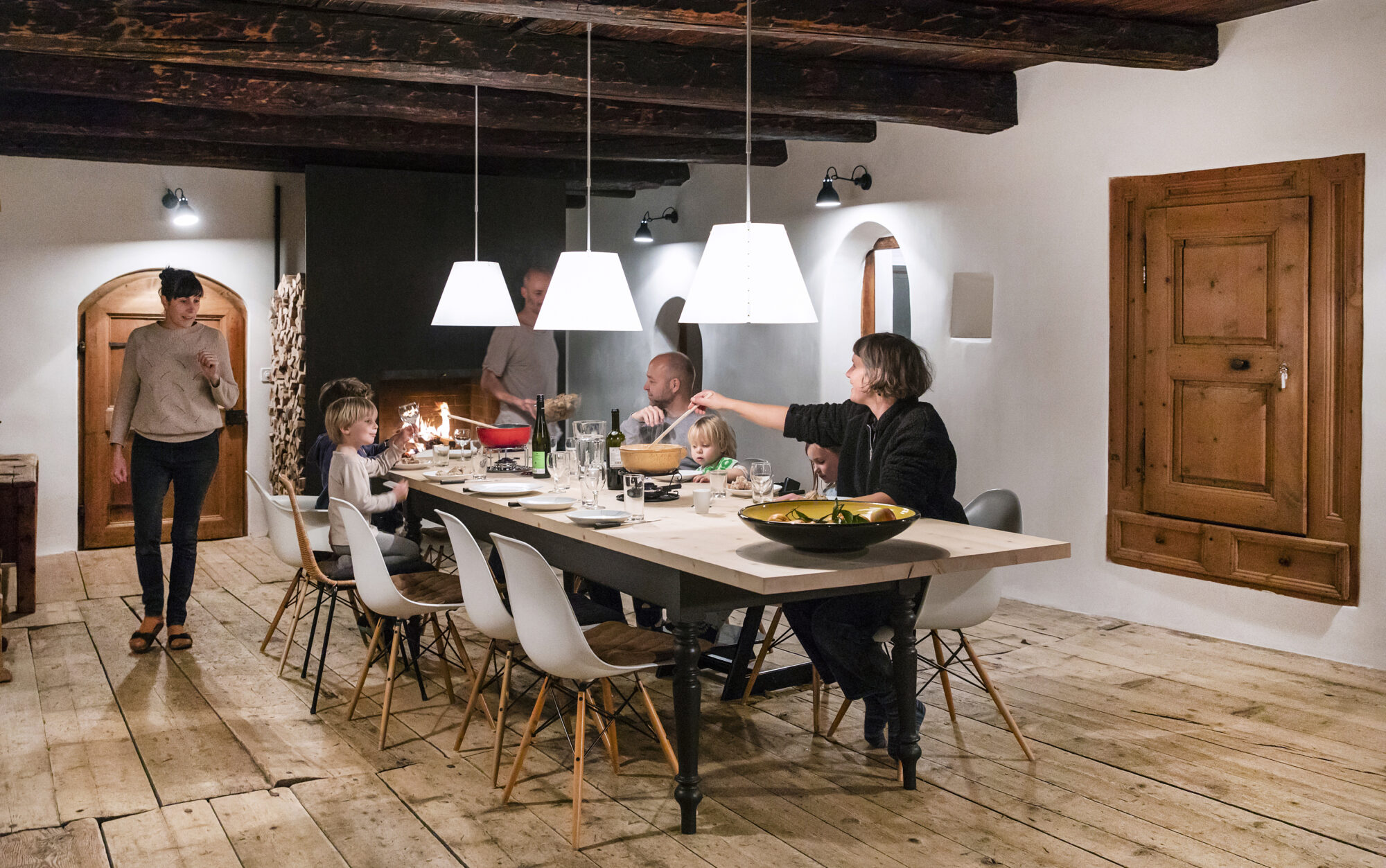 Auch für einen festlichen Anlass im kleineren Rahmen wird das Haus gerne und rege gebucht. Zusätzliche eingeladene Gäste des Anlasses übernachten dann in Gastzimmern im Dorf.