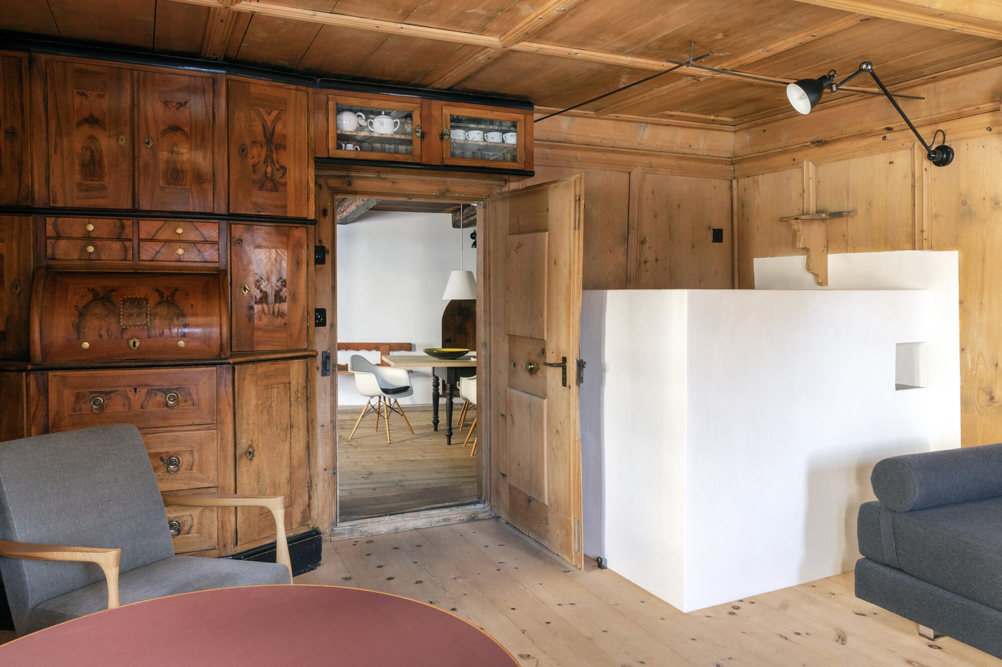 Die chombra a dretta hat mit dem bural (Falltüre über dem Stubenofen) einen direkten kleinen Zugang zur unteren stüva.