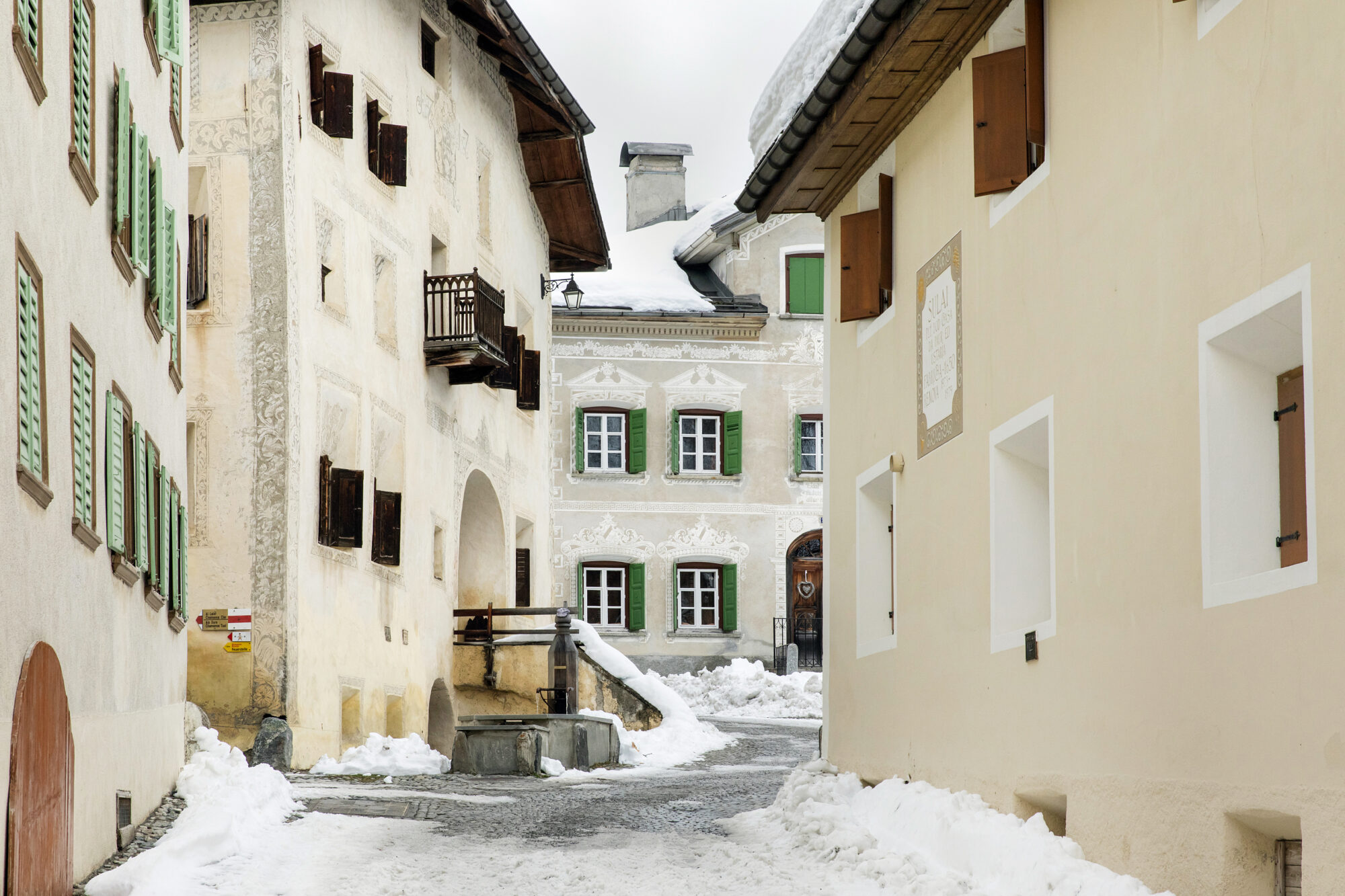 Guarda. Ein Dorf, das den Spagat zwischen der Musealität und der Gegenwart lebt. Die Einheimischen und Zweitheimischen und die Gäste leben nahe beieinander. Das ermöglicht interessante Begegnungen und Entwicklungen und belebt das Dorf im Jetzt und für die Zukunft nachhaltig.